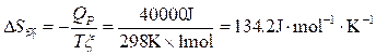 =8.314 J·mol -1·K-1×288K×ln0.35= -2512 J·mol -1 (4分)