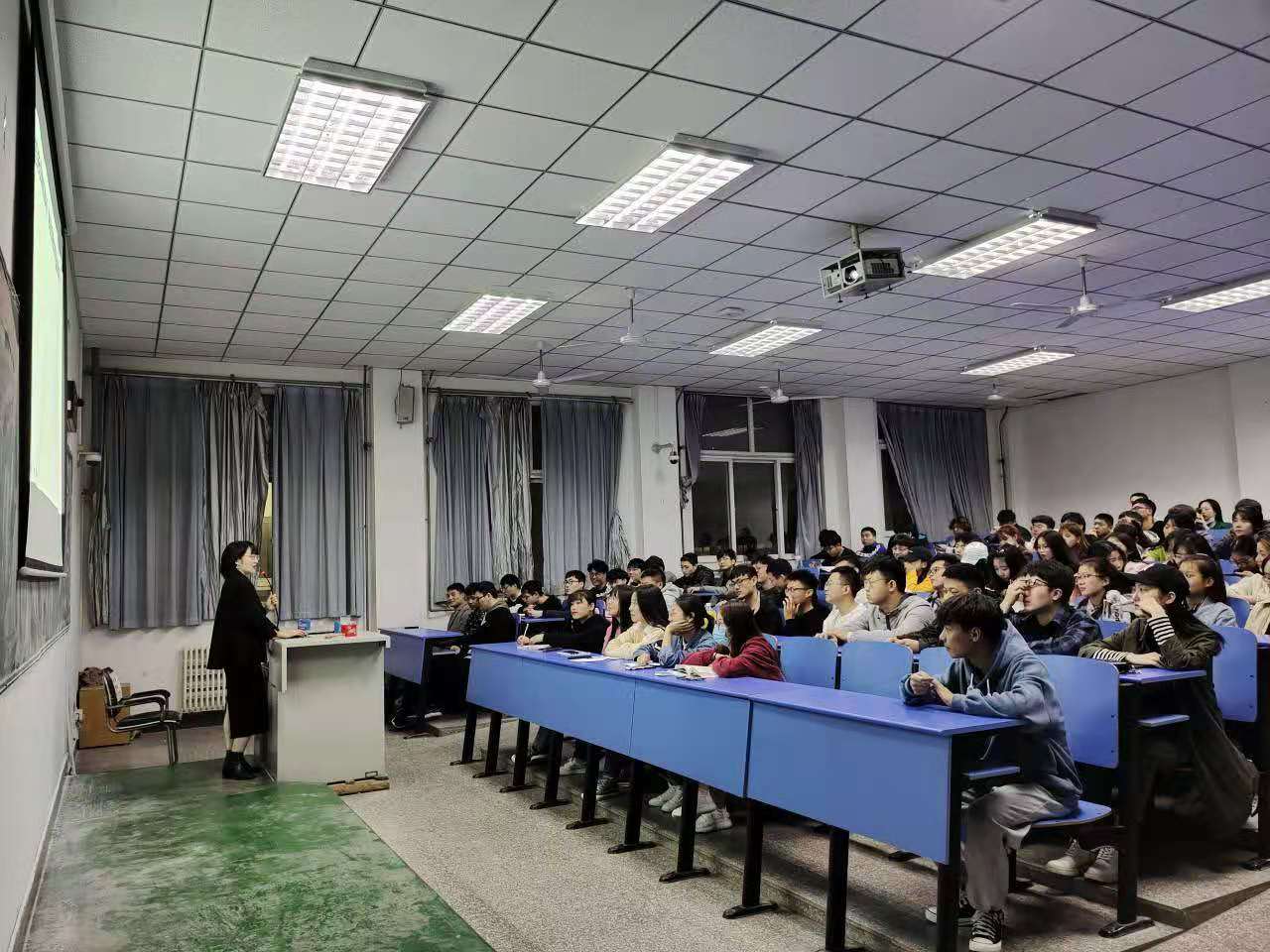 为打开电子信息工程(中外)专业学子们的国际化视野,帮助他们尽早确定未来的规划方向,11月12日晚,公司在3406教室举办了主题为“选择西班牙,选择无限未来”的交流讲座。河南省国际教育交流协会对外交流负责李老师,18、19届近200名中外专业的员工参与了此次讲座。