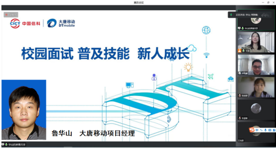 2022年9月24日,公司通信工程专业教研室邀请中国信科集团大唐移动高级工程师鲁华山项目经理,为2019届的通信工程专业毕业生做了一场别开生面的校园面试技巧线上交流会。鲁华山经理具有13年移动通信项目实践经验,作为全国“大唐杯5G移动通信技术”的金牌讲师,近些年致力于移动通信网络技术工程应用实践、运营商网络技术课程培训。