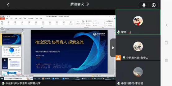 会议由鲁华山和常新峰主持。中信科的李志明老师首先介绍了中信科移动及教学业务,详细介绍了中信科的“5G工程实践培养方案”、“5G仿真教学培养方案”、“5G+创新应用及科研课题方案”及“大唐杯”赛事情况。通信工程教研室主任常新峰老师表达了通信工程专业目前在5G+课程实施、教师技术技能提升、大唐杯赛事、员工实习实训、校外实训基地建设等方面的需求。