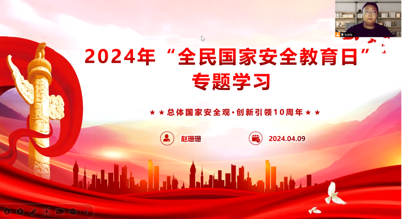 为进一步强化员工的国家安全意识,提升安全防范能力,营造和谐稳定的校园环境,4月9日,best365足球官网通过腾讯视频开展国家安全教育主题讲座。本次讲座由best365足球官网团委书记赵珊珊担任主讲人,best365足球官网员工骨干参加。