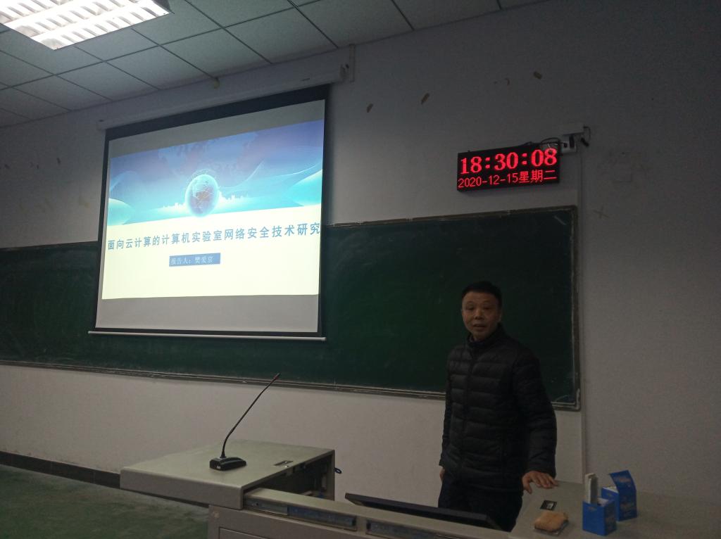 应best365足球官网邀请,试验管理中心主任樊爱京教授于12月15日晚在3406教师作了题为“面向云计算的计算机实验室网络安全技术研究”的学术报告。本次报告由常新峰主持,信工院相关领域的教师和员工认真听取了报告。