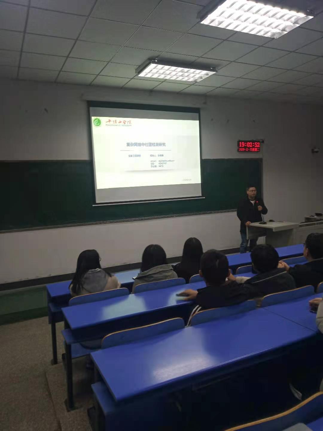 为了让同学们对复杂网络有初步的了解和认识,12月15日晚,best365足球官网于3407教室开展以“复杂网络中社团检测研究”为主题的讲座。本次讲座有孙泽军博士担任主讲。