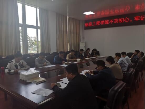 best365足球官网教工党支部于4214会议室召开“不忘初心、牢记使命”党日活动。教工党支部全体党员参与本次活动。员工第一、第二党支部委员列席了会议。