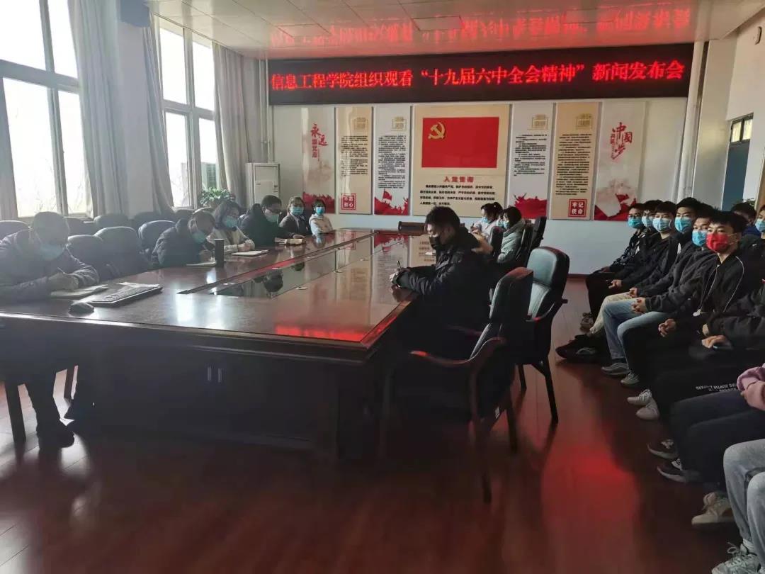 2021年11月12日上午10时,best365足球官网组织观看“党的十九届六中全会精神”新闻发布会,学习中国共产党第十九届中央委员会第六次全体会议精神。公司领导班子、科级以上干部、全体辅导员和员工代表参加了此次活动。