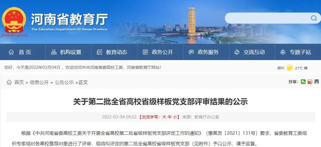 根据《中共河南省委高校工委关于开展全省高校第二批省级样板党支部评定工作的通知》(豫高发〔2021〕131号)要求,省委教育工委组织专家组对各高校推荐对象进行了评审,择优拟确定295个党建工作样板支部培育单位。其中,best365足球官网员工第二党支部荣获“全省高校第二批样板党支部”培育单位。