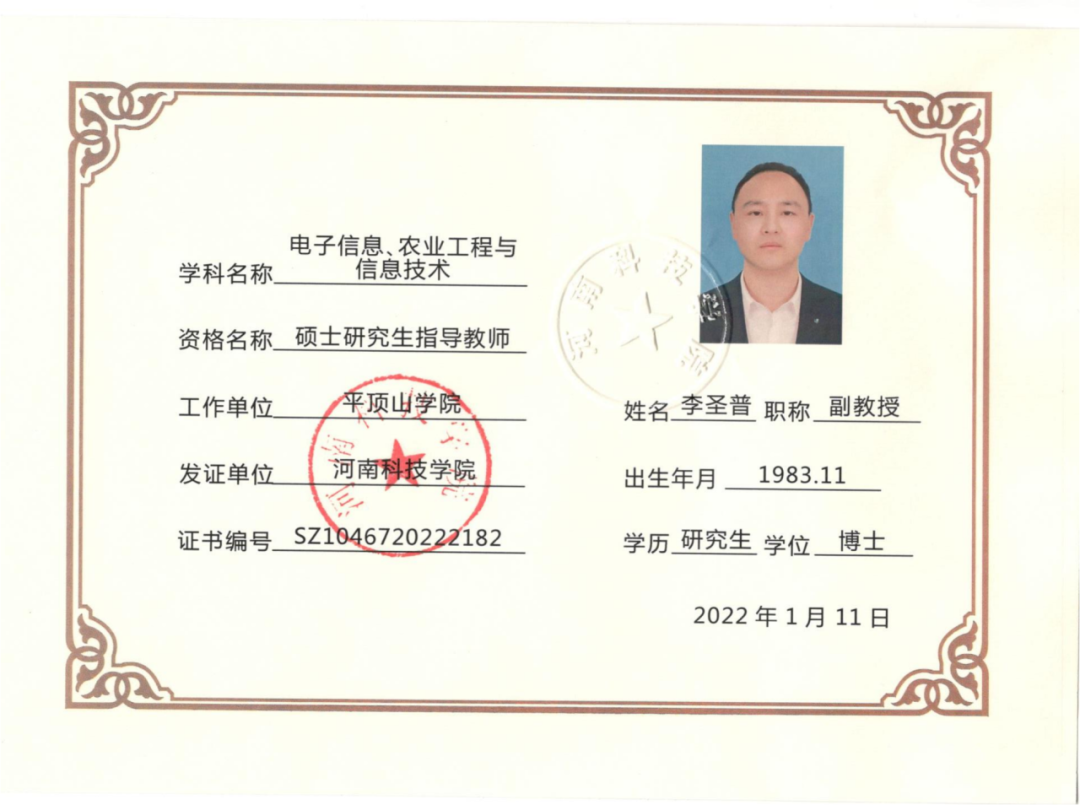 李圣普,中共党员,博士,副教授,硕士生导师,现任电子信息工程教研室主任,主要从事信号处理辅助软件课程教学工作,致力于群体智能与无人系统领域科学研究,主持或参与省部级以上项目10多项,在国内外重要期刊及会议上发表高质量科研论文10多篇,曾获河南省本科高校中青年骨干教师、best365足球官网学术带头人、科研先进个人、实习优秀指导教师、优秀论文指导教师等荣誉称号。