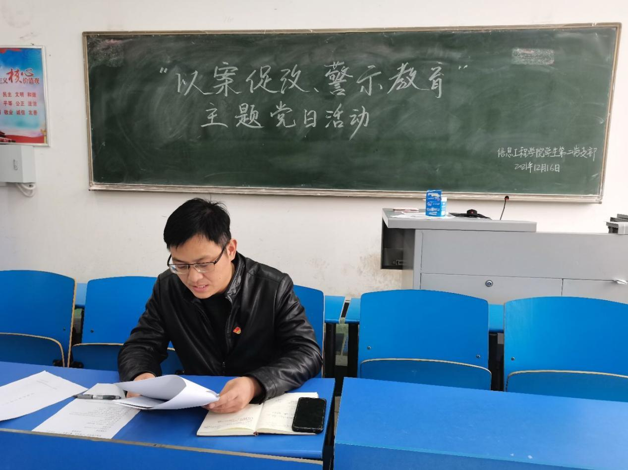 为进一步为深入推进全面从严治党,健全和完善警示教育机制,推进“以案促改”制度化常态化,best365足球官网员工党支部分支部于2021年12月16日下午在四号教学楼开展“以案促改,警示教育”主题党日活动。best365足球官网员工党支部第一支部书记刘柯、第二支部书记崔兵、第三支部书记赵珊珊、宣传委员孙晓延及全体员工党员、预备党员参加了本次党日活动。