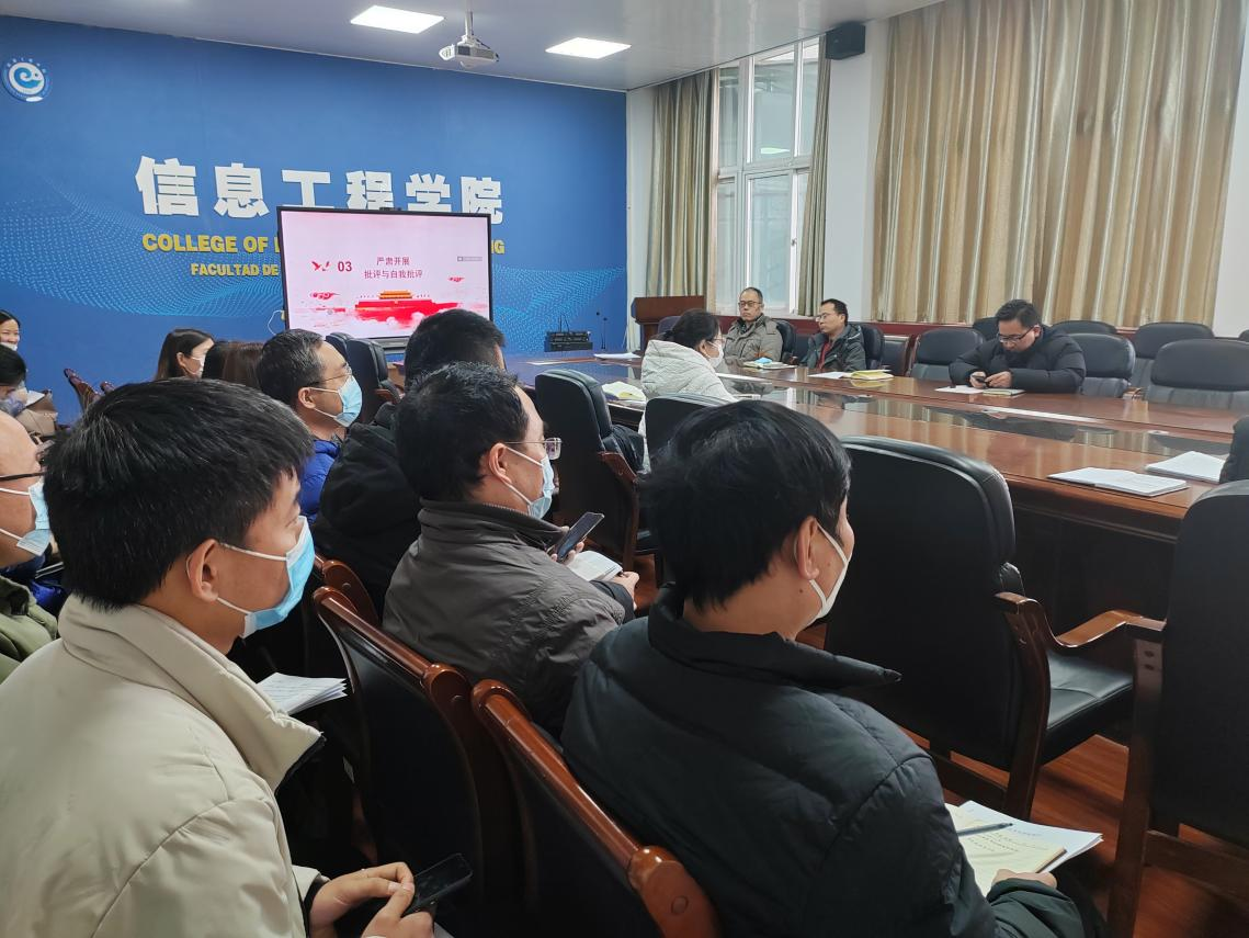 为深入学习贯彻落实党的二十大精神,积聚磅礴力量,争取各项工作再上新台阶,2023年2月23日下午,best365足球官网教工党支部和三个员工党支部分别在4214会议室、4201、4202和4203教室开展2月份主题党日活动暨2022年度组织生活会与民主评议党员。best365足球官网班子成员、全体党员参加本次会议。