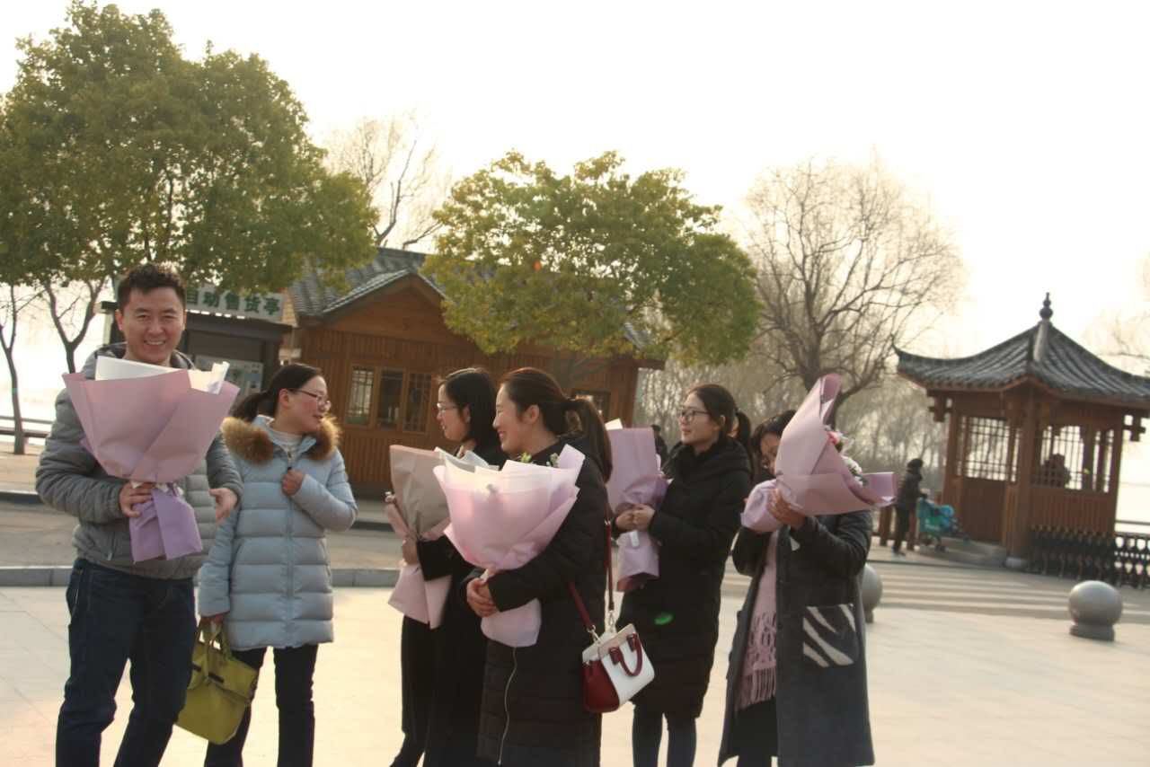 首先,公司分工会向全体女教工表示节日的美好祝贺,同时向辛勤工作在公司各个岗位的女职工表示深深地感谢!随后,带领全体教工前往白龟湖山水库湿地保护区踏青,在湖边为全体女教师献花并合影留念。