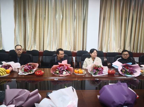 然后各位领导向女教工送鲜花,也送来了给大家的关心与祝福。