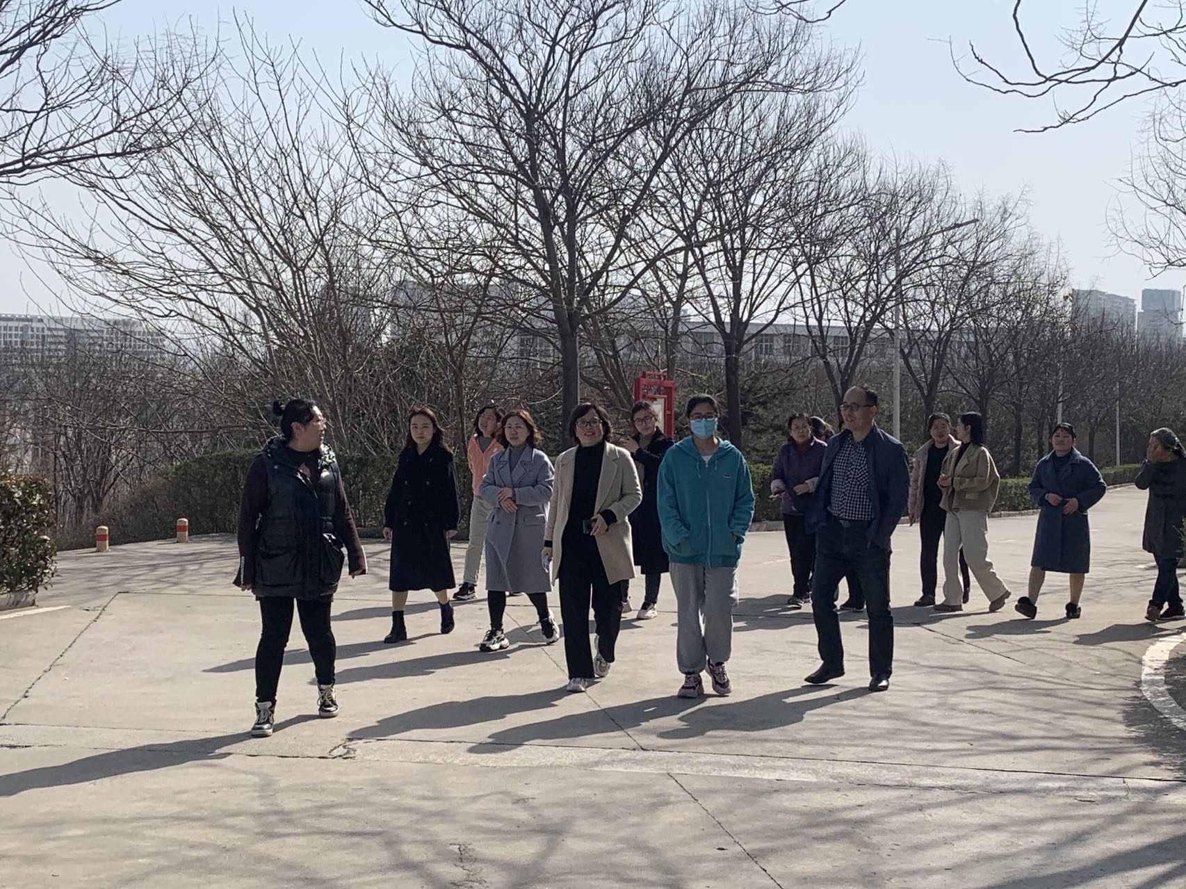 三月的best365足球官网校园内,微风拂面。首先,分工会组织女教职工在4号教学楼前进行健美操活动。活动前,老师们主动拉伸、小跑,为之后的健身操做好热身。随后伴随着轻快的,富有节奏的音乐,跟着响亮的口令,伸展腰姿,抬头仰胸,手舞足蹈,个个身心投入,深切地体会到了健美操及舞蹈带来的快乐。随后,大家从4号教学楼出发,沿着校园进行了健步走活动。大家三五成群,一路欢声笑语健步而行,一边呼吸着户外的新鲜空气,一边欣赏美景,在亲近自然中互动交流、增进情谊,在健康运动中拥抱春天、舒展身心。