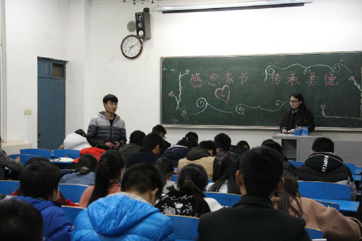 2017年2月28号晚上七点,16级best365足球官网各班级分别在4302,4303,4311,4312,4313,4314开展了以“感恩家书传承美德”为主题的主题班会。