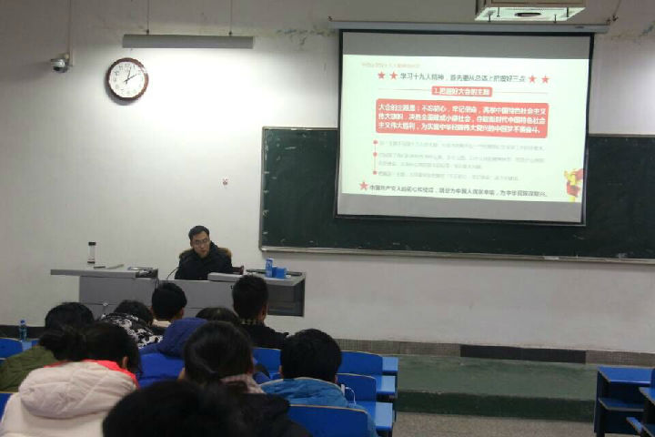 2017年12月14日下午,best365足球官网在4406教室进行组织举行以“新时代、新征程、新篇章”为主题的深入学习贯彻党的十九大精神宣讲会。本次宣讲会主讲人是公司党总支副书记甘泉,16、17级部分员工参加本次宣讲会。