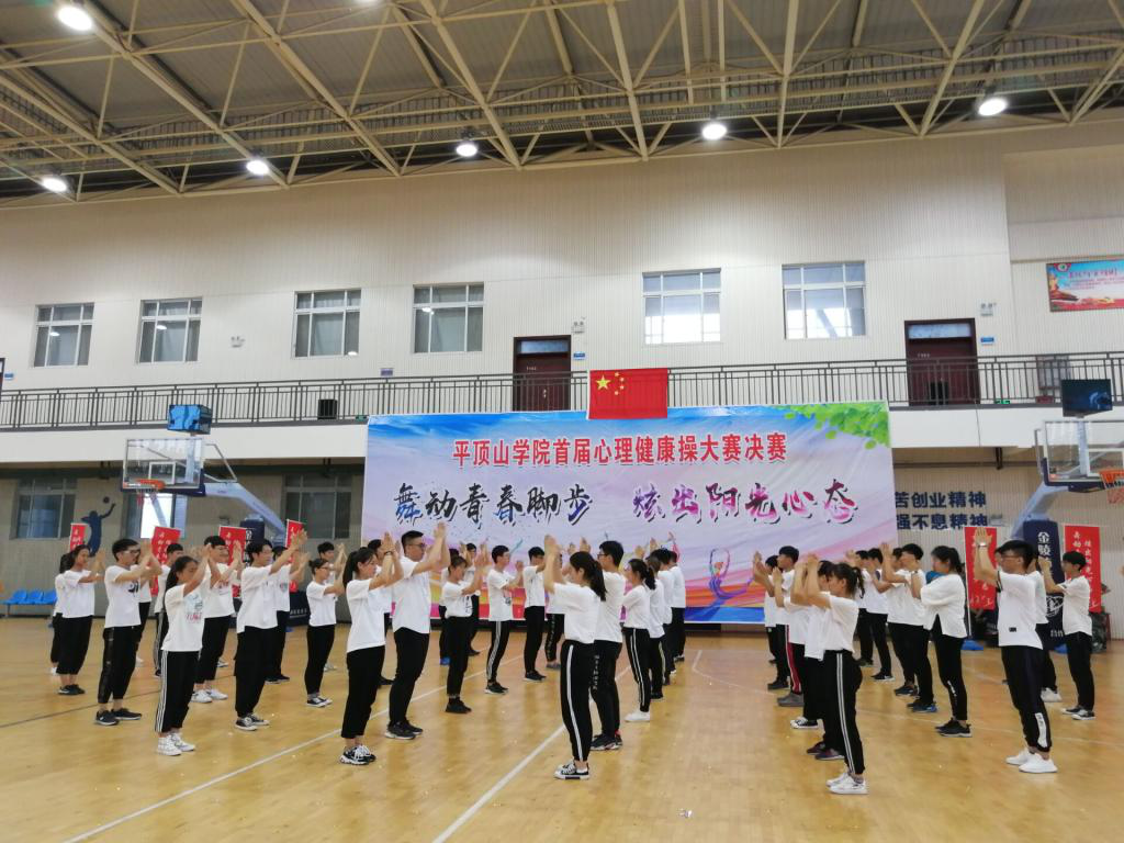 5月16日下午,best365足球官网首届心理健康操大赛决赛在体育馆举行。此次比赛由学工部主办,老员工心理协会、国防预备役连承办。体育公司蒋丽芳、赵金凤老师,音乐公司邱璐、毕林子老师,老员工心理协会赵迎春老师出席并担任此次比赛评委。
