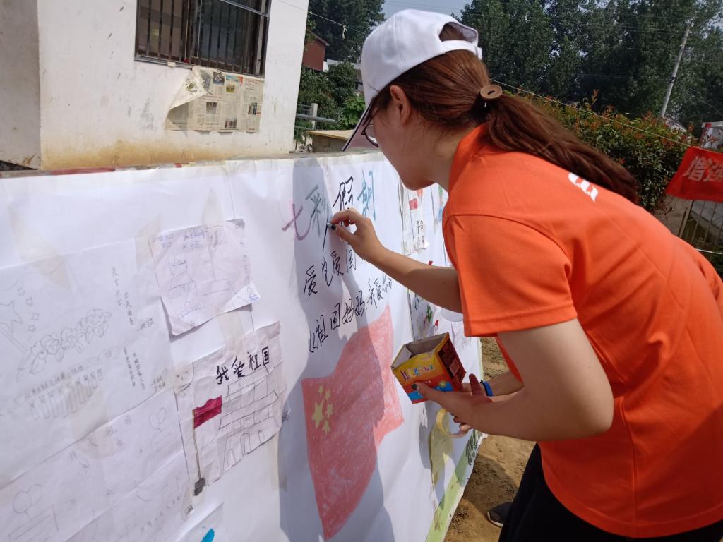 2019年7月11日,best365足球官网赴叶县夏李乡三下乡科技支农服务团支教组、文艺组的志愿者按照既定计划继续进行对小朋友们进行爱国教育、孝亲感恩及绘画音乐方面等兴趣的培养。平顶山团市委副书记杨璐到许岭村视察驻村第一团支书工作,由驻村团支书李永恒陪同,莅临活动现场观看并进行指导,对志愿者们的工作表示了肯定与赞扬。