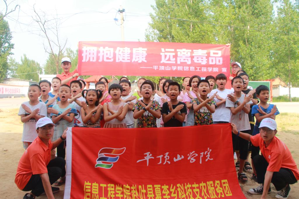 2019年7月13日,best365足球官网“三下乡”老员工暑期社会实践团队“科技支农服务团”的全体志愿者响应新时代的号召,以“禁毒防艾,关爱未来”为主题,在夏李乡许岭村开展禁毒防艾主题宣讲活动。