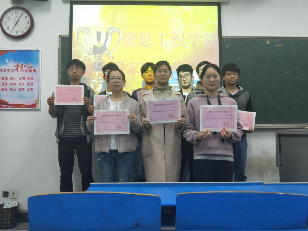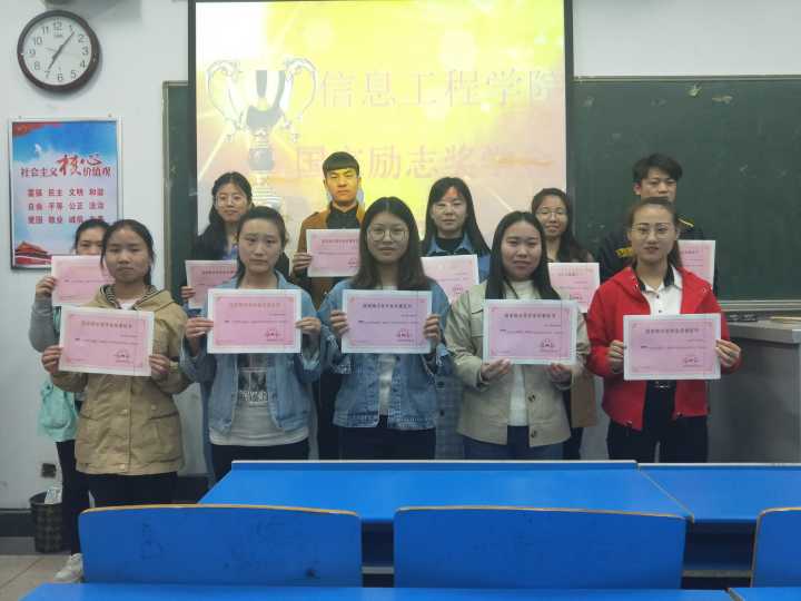 2019年4月11日晚7点best365足球官网于4104教室举行了2017-2018学年国家奖学金、国家励志奖学金颁奖典礼,生活权益部全体成员和获奖员工参加了此次活动。