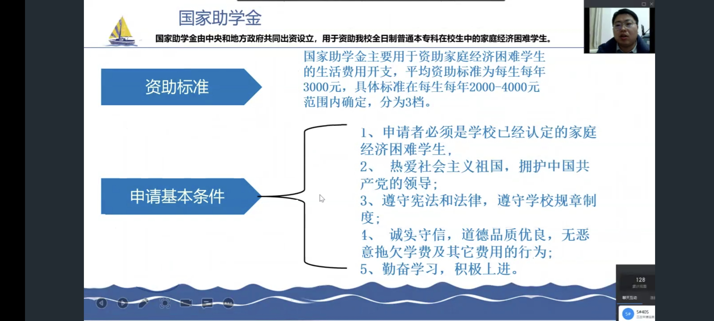 为向2022级新生普及资助知识,2022年9月5日best365足球官网在线上展开了以“谨防校园贷,理性消费”为主题的资助育人教育讲座。best365足球官网资助负责人吴英杰老师和生活权益部部长李帅作为主讲人向新生介绍“奖、贷、助、补、减、保”的有关文件和规定,重点讲解贷款、困难生认定以及奖助学金的政策,使2022级新生更具体的了解到国家及院校给予员工的资助政策。通过这种“面对面”的交流形式,新生全面的认识了校园贷的风险和危险,以及理性消费的必要性。