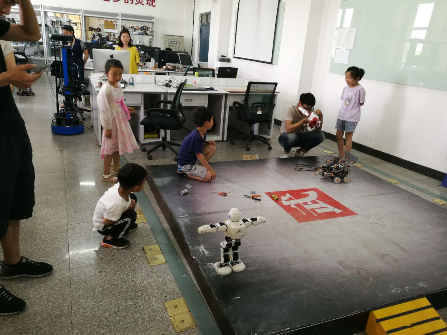 活动以公司机器人实验室、物联网创新实验室为依托,通过机器人、物联网作品、学科竞赛作品,开展机器人介绍、机器人制作、儿童防侵害的教育活动。同时还举行了机器人拼装活动,把拼装好的机器人作为礼物发放给小朋友。