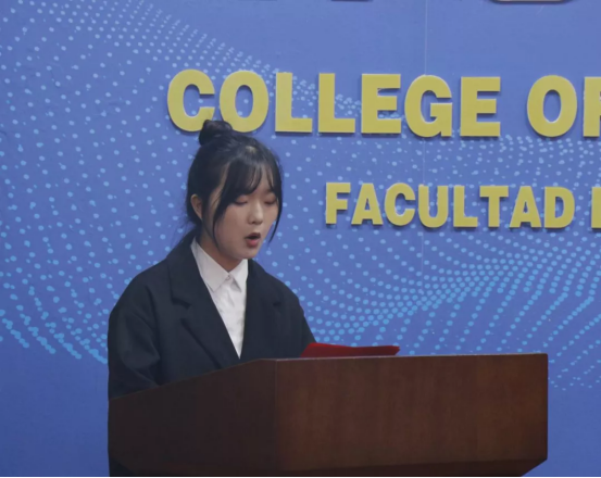 紧接着,19级电子信息工程一班王玉浩作为员工志愿者代表给大家分享了自己的感悟,她表示灾难使人痛苦,也使人成长。在灾区工作时,一个个物资从她手中传递过去,她感到的不仅是沉甸甸的爱,更是中国人民一方有难八方支援的感动。