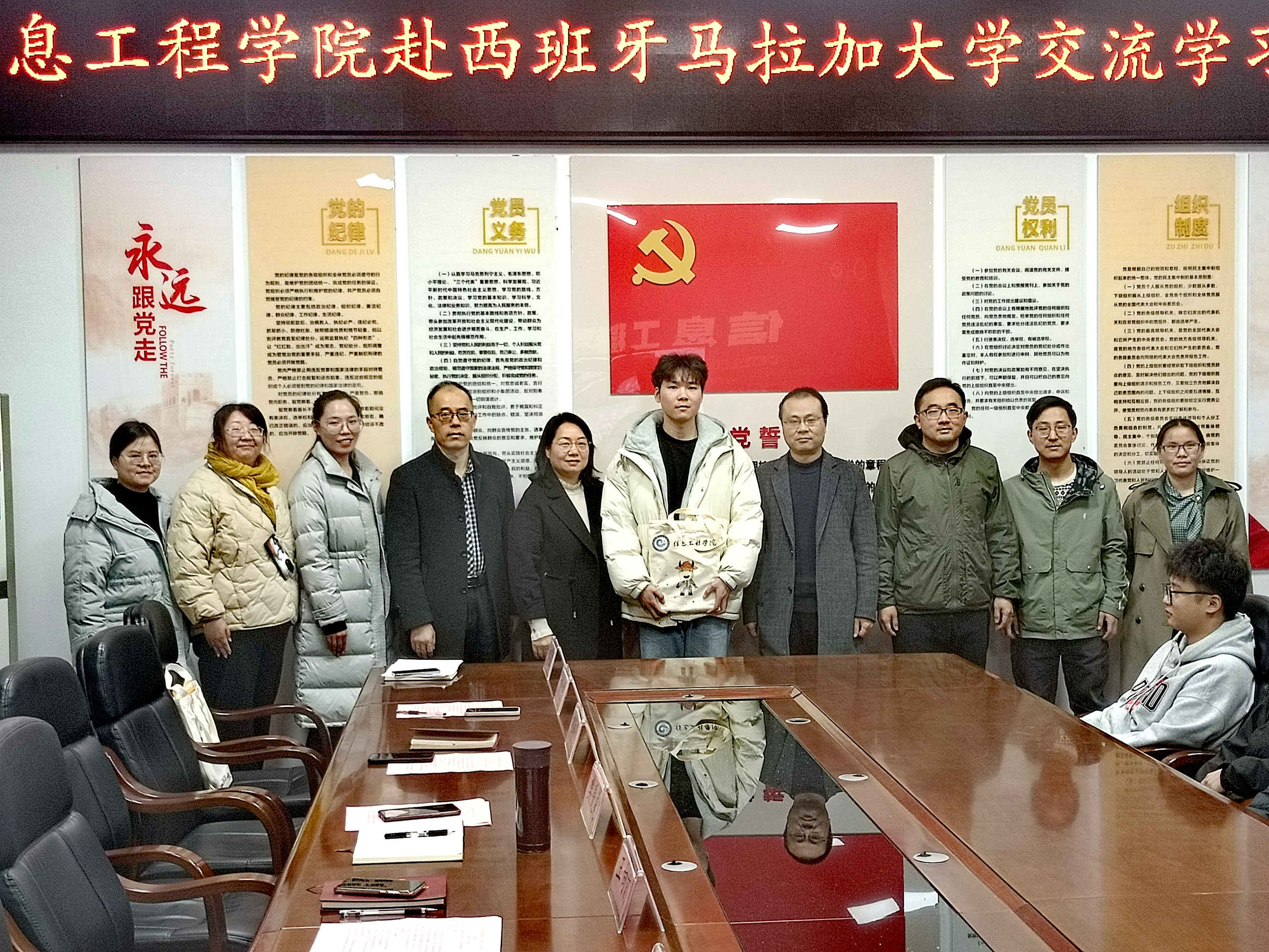 11月16日下午5:00,公司在4214会议室举行2020届毕业生赴西班牙马拉加大学交流学习欢送会。公司党委书记王向前,经理樊爱宛,副经理时合生、胡海峰,中外合作专员邹明、赵贺,各年级中外合作专业辅导员,出国员工2020级电子信息工程(中外合作)专业李数数、胡靖知(线上参会)及21级有出国意愿员工参加本次欢送会。会议由团委书记赵珊珊主持。