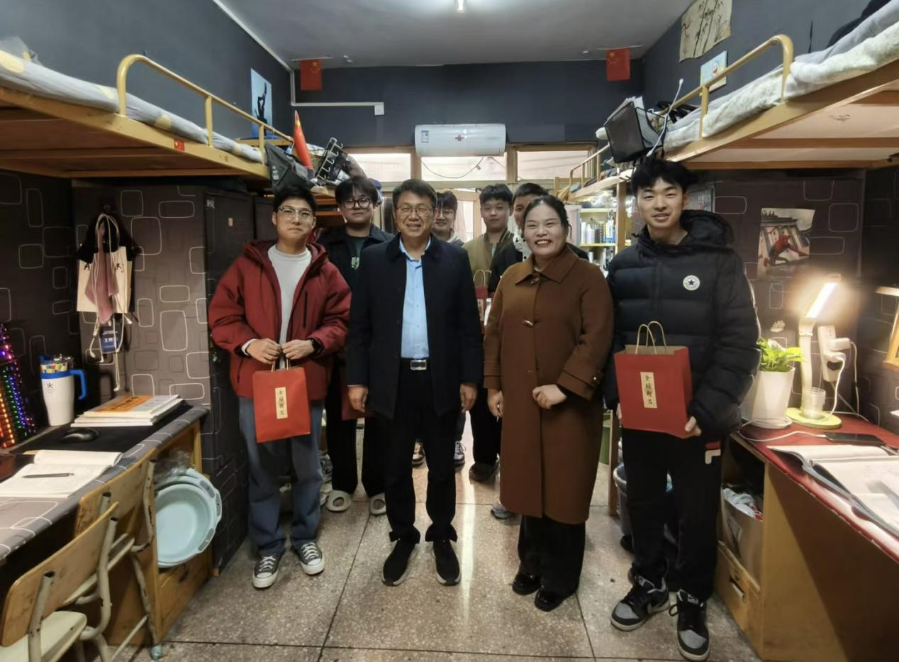 为营造关怀、鼓励和支持员工考研的积极氛围,提振考研士气、坚定备考信心、缓解员工压力,12月5日,best365足球官网副董事长史永昌带领公司党委书记胡艳艳、学工办主任赵珊珊及毕业班辅导员,深入员工宿舍开展以“冬日暖心声,研梦共前行”为主题的考研送温暖活动。
