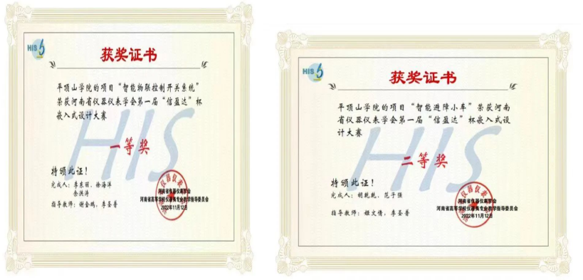 近日,由河南省仪器仪表学会、郑州信盈达电子有限公司共同主办的河南省“信盈达杯”嵌入式创新设计大赛决赛在河南工业大学落下帷幕。由公司best365足球官网组建的参赛队伍从全省参赛高校的150余支代表队中脱颖而出,荣获佳绩。其中,由李东丽、徐海洋、余洪涛设计的“智能物联控制开关系统”荣获一等奖,由胡乾乾、范子强设计的“智能避障小车”荣获二等奖,另有3项作品荣获三等奖,李圣普、谢金鹏荣获优秀指导教师称号。