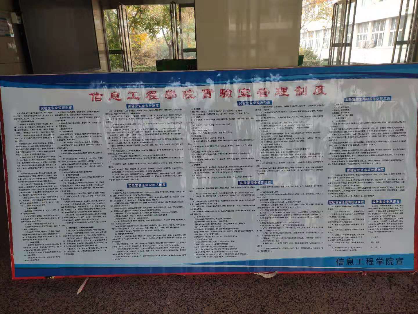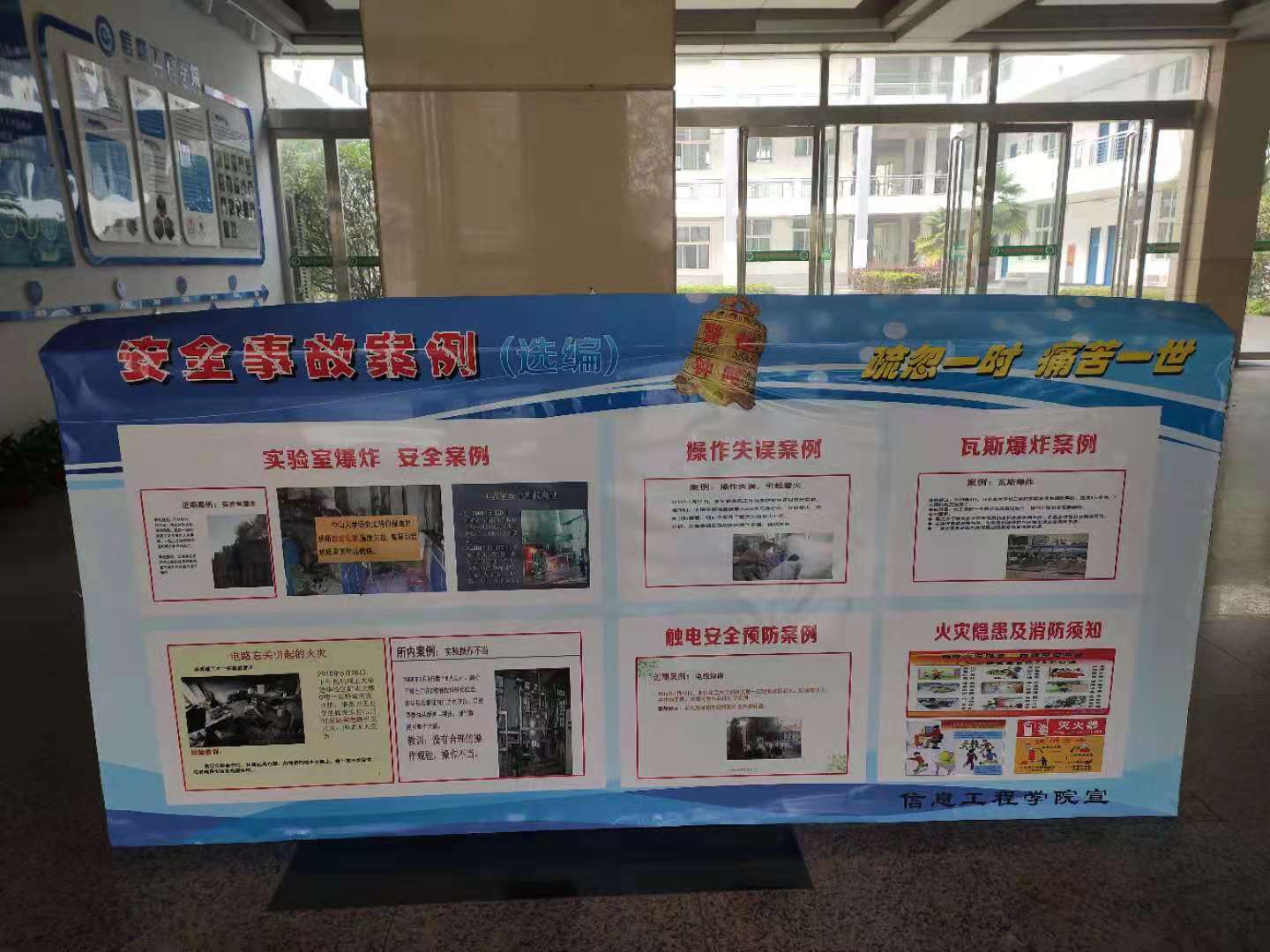 提出信息工程公司2021年实验室安全文化宣传活动月口号-“严谨严格严防,安全为首,实验室安全管理工作永远在路上”,通过实验室安全宣传展板、实验室规章制度展板、实验室安全事故案例展板以及电子屏、公众号等平台进行实验室安全文化宣传教育,切实提高了院系师生的安全意识。