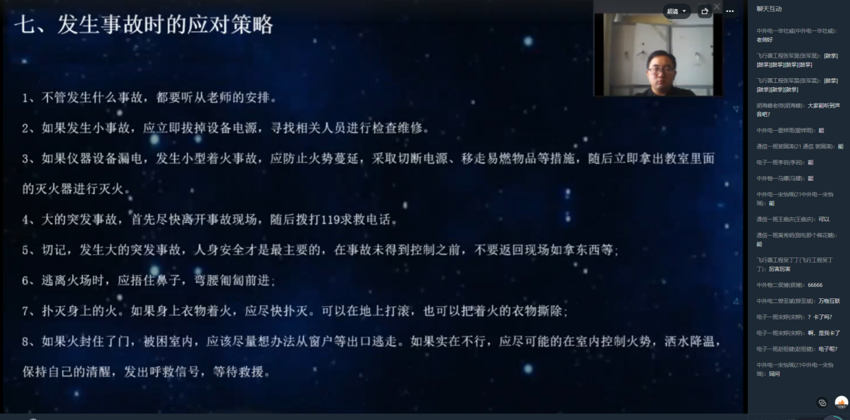 根据实验室管理处《关于做好2022年实验室安全教育的通知》要求,为加强实验室安全管理,强化师生实验室安全意识,提高师生安全技能,预防和杜绝实验室安全事故的发生,2022年9月9日上午8:30-10:00,通过腾讯会议的方式,best365足球官网副经理胡海峰为新进教师及2022级新生进行了一场生动的实验室安全教育相关知识讲座。